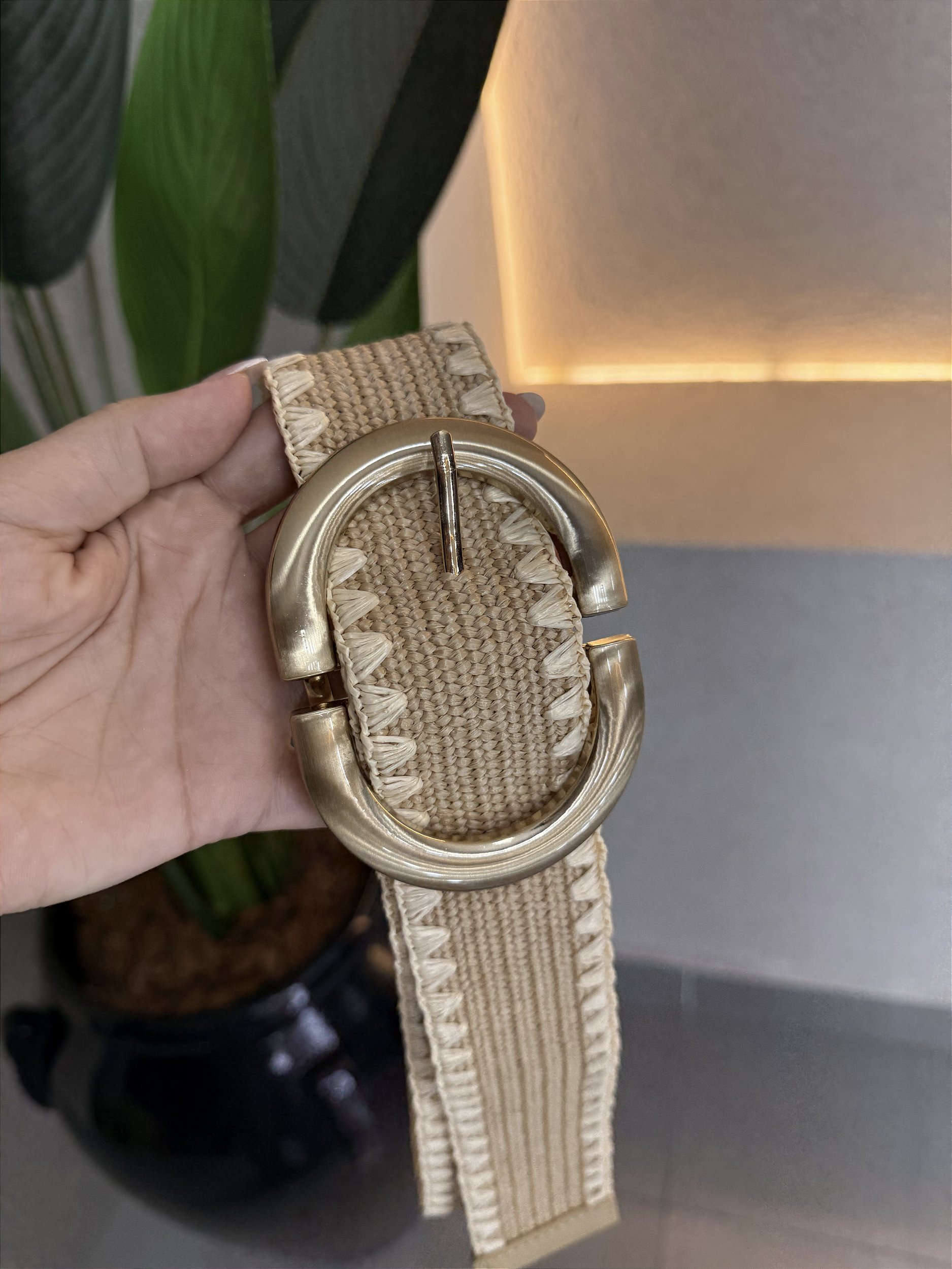 Cinto palha fivela grande fosca